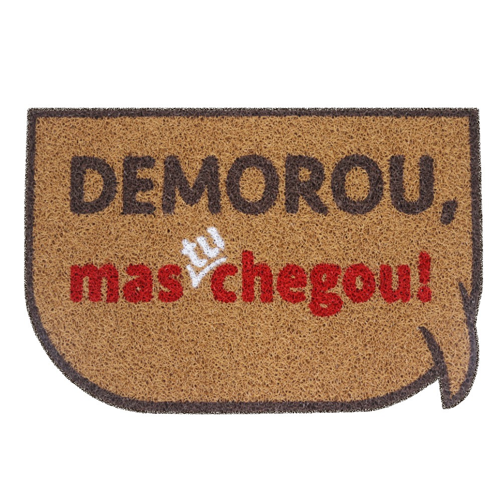 Este tapete capacho "Demorou, mas Tu chegou, é ou não é um tapete diferenciado"? Ele é um tapete com formato retangular, mas com corte especial. Vem ser diferente também!?!